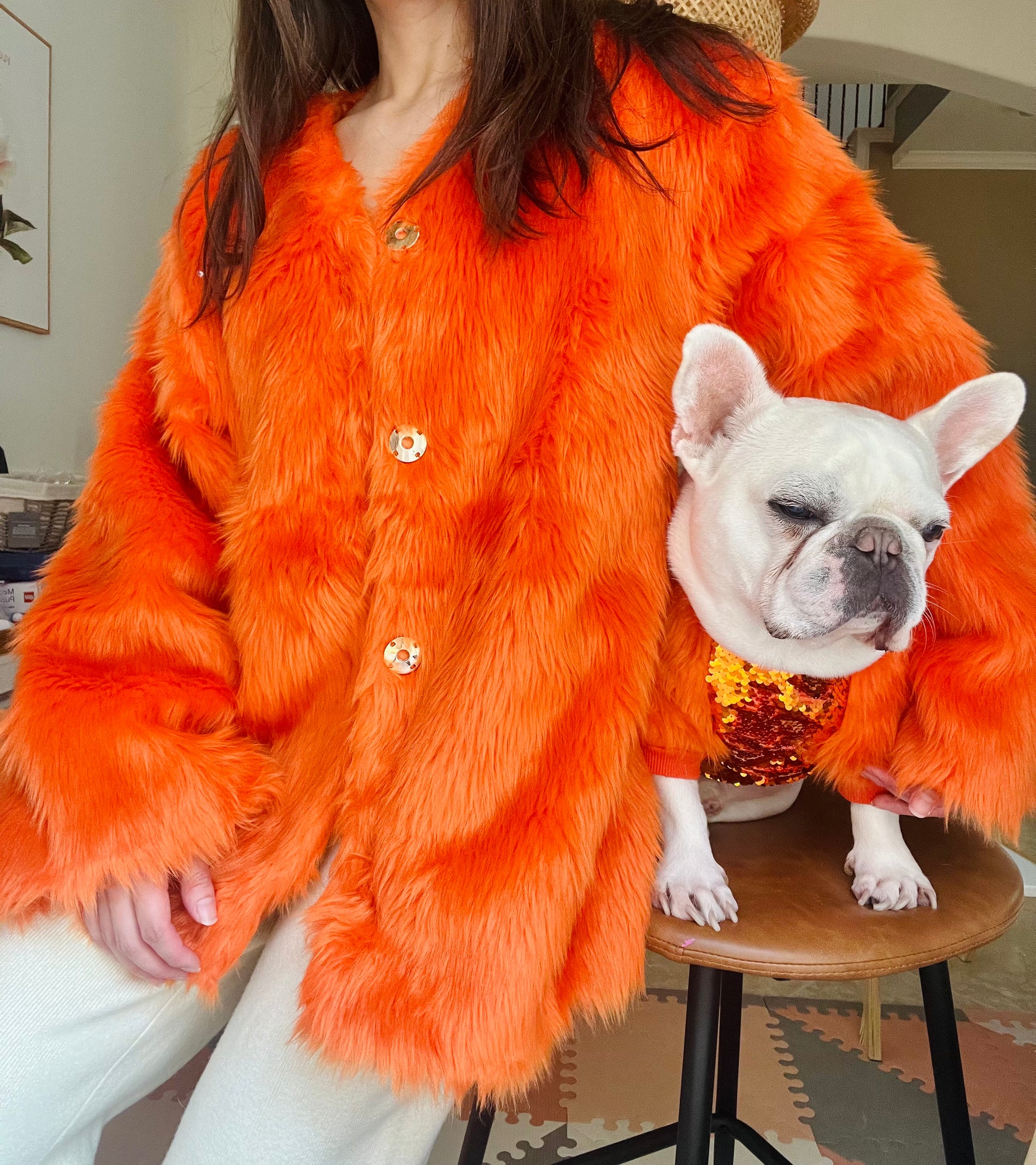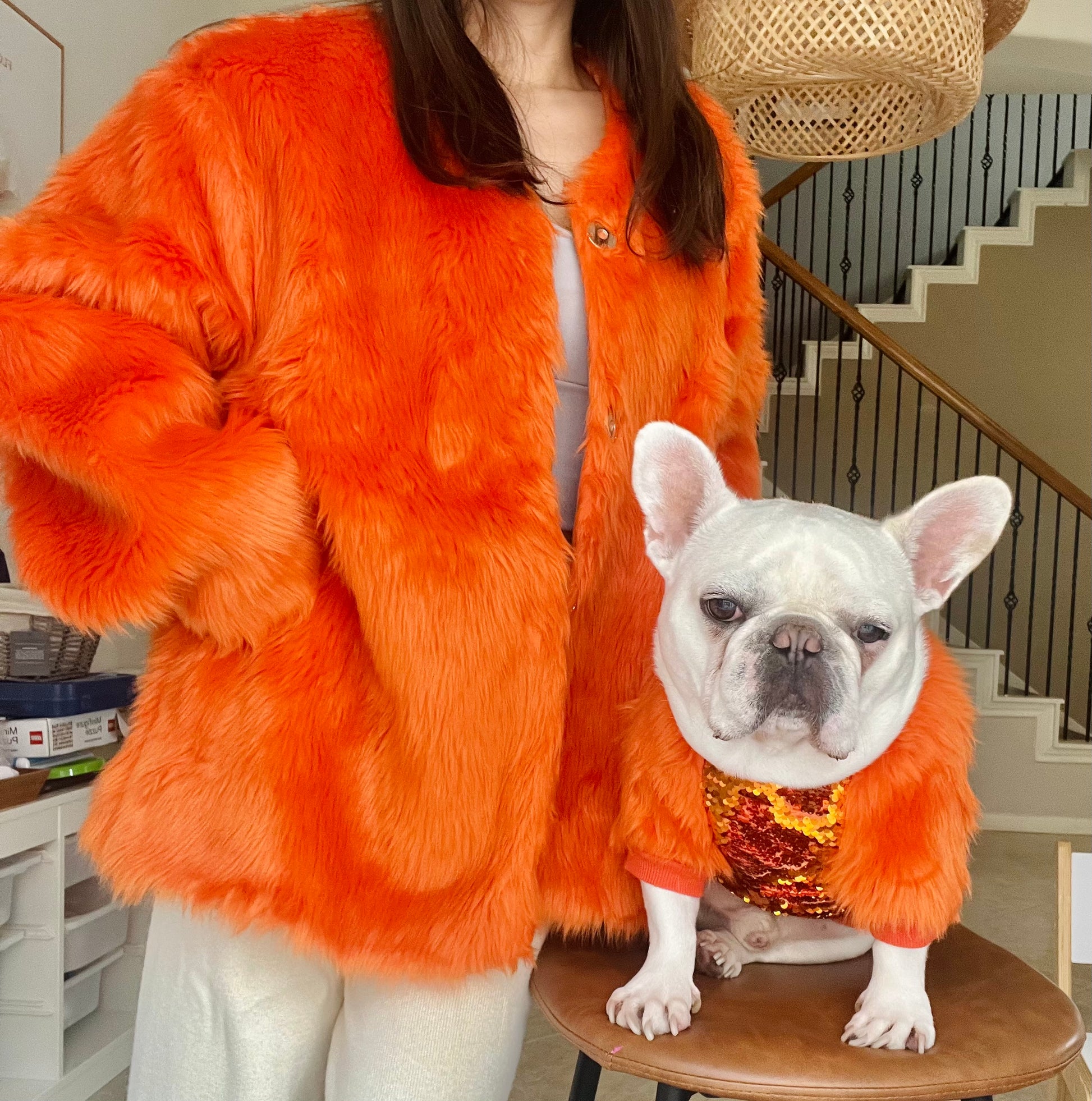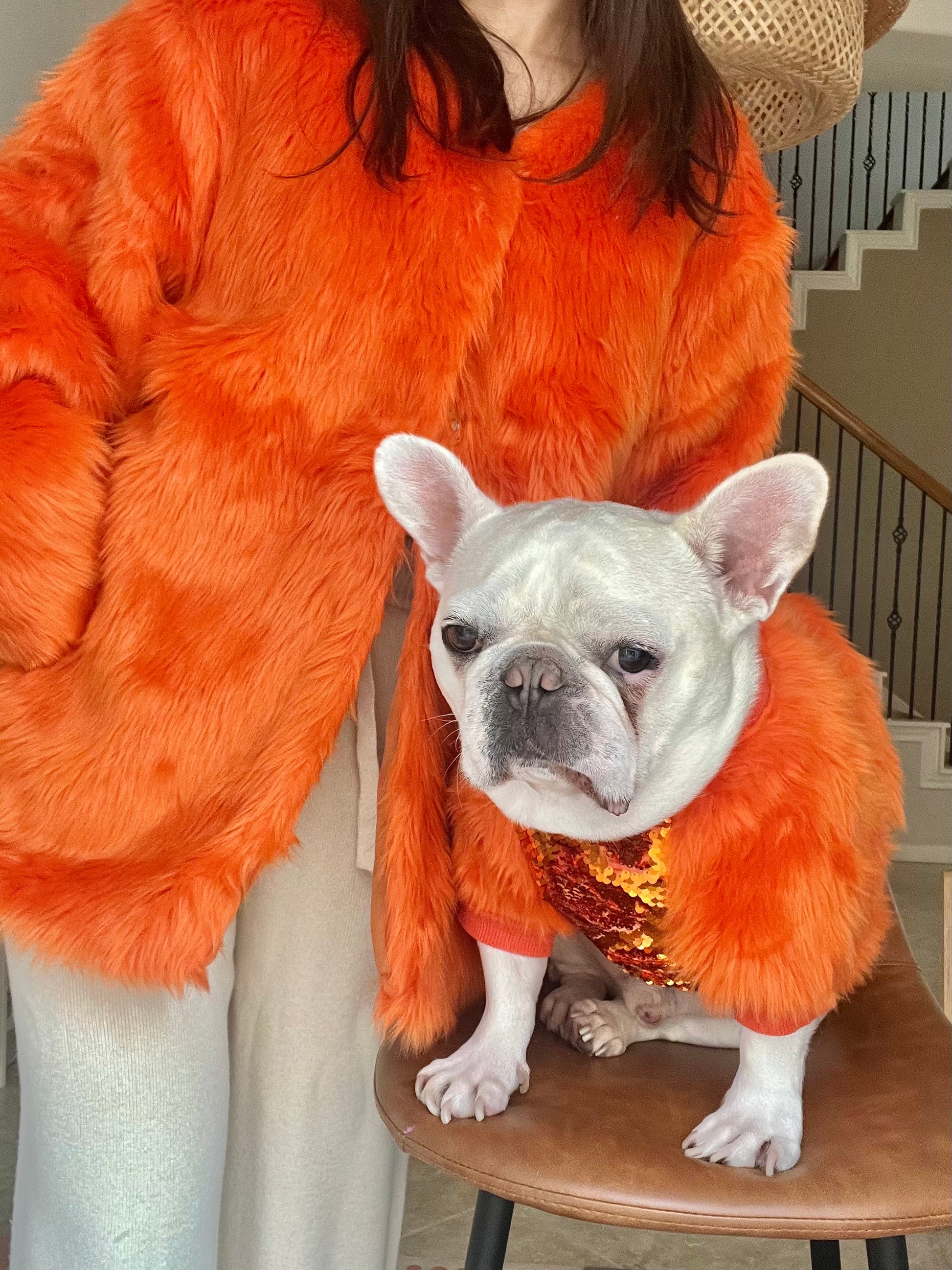 Pet and Owner Matching Orange Faux Fur Gatsby Jacket and Sweater