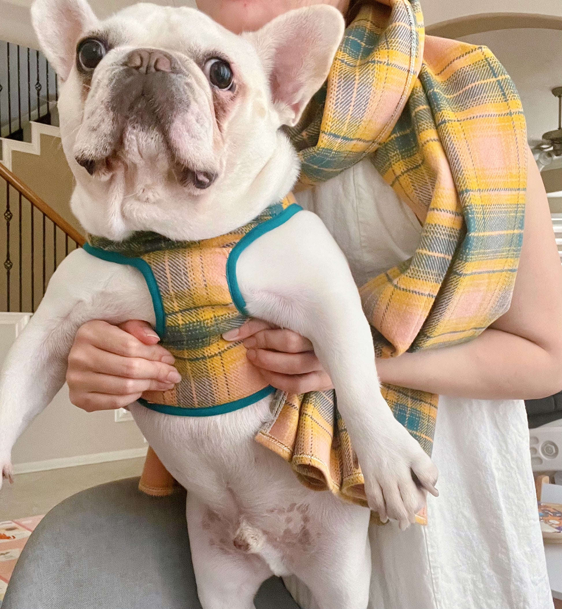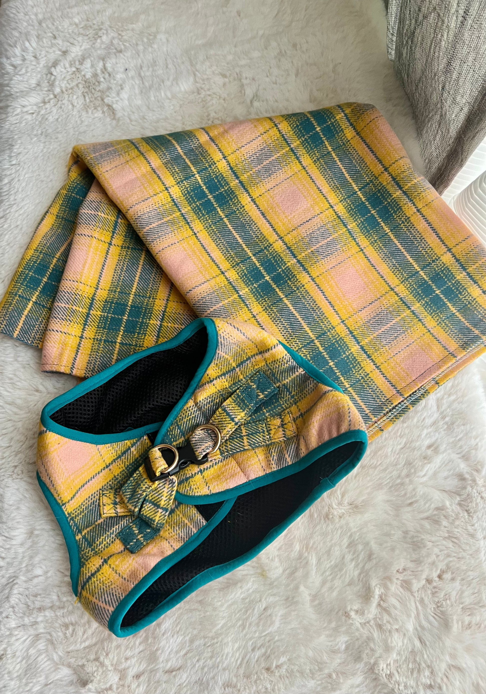 Immerse yourself in the charm of coordinated fashion with our pet and owner matching set. The owner's shawl-style accessory adds an elegant touch, embracing a timeless and trendy look. Crafted with cotton fabric, the matching hardness for your pet ensures they stay cool and comfortable during walk.