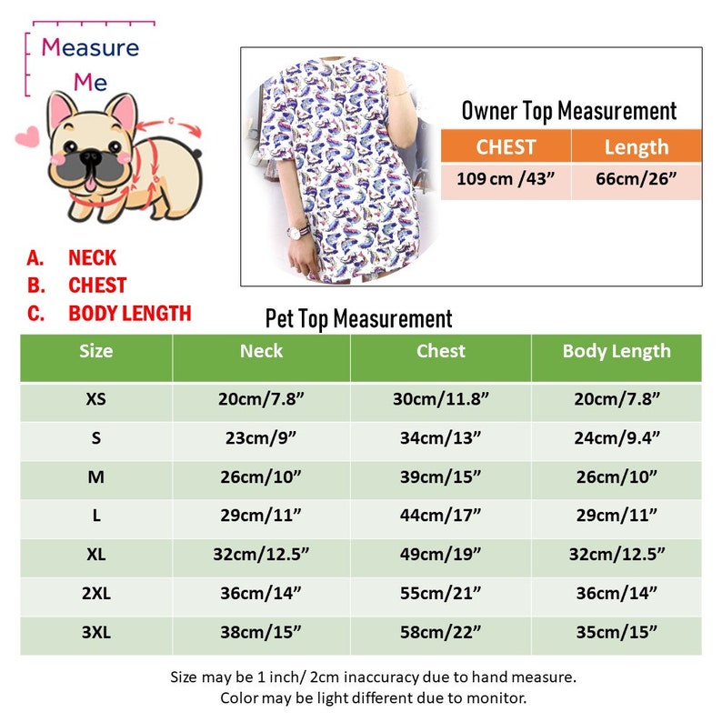 Details: Very breathable fabric! You and your pet will enjoy wearing this across all seasons because of their comfort, cute and lasting quality.