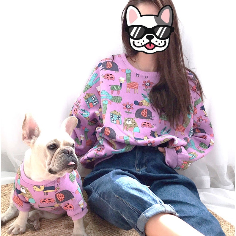 Matching Pet Owner Set, Pets Cat Dog Parent Long Sleeve Sweatshirt Fleece Animal Drawing Print Fits Small to Medium Pet Dog Cat
