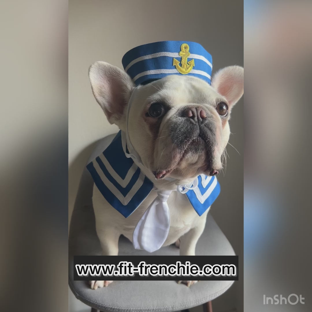 The sailor bandana adds a touch of nautical charm to your pet's attire. It features classic blue stripes, reminiscent of the open sea. The costume is complete with an adorable sailor hat, featuring an anchor emblem. The hat secures comfortably on your pet's head with an adjustable strap, ensuring a snug and safe fit.