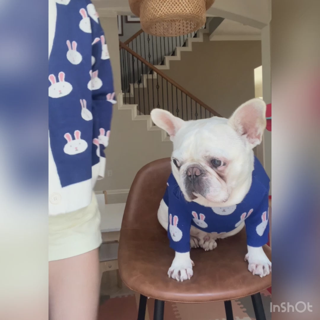 Stay cozy with our cute bunny print cardigan-sweater matching with your soul pet. Feature instagram-able white rabbit print. Great for taking your pup out for walk or to the park while looking stylist.