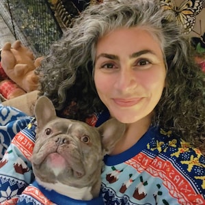 Oops, I goofed. I posted the adult shirt review for the dog shirt. The dog shirt fits perfectly. I was a little disappointed that the figgy puddings were only on the tummy area (my dog's name is Figgy Pudding), but construction can't be helped. Thank you for the beautiful shirt!