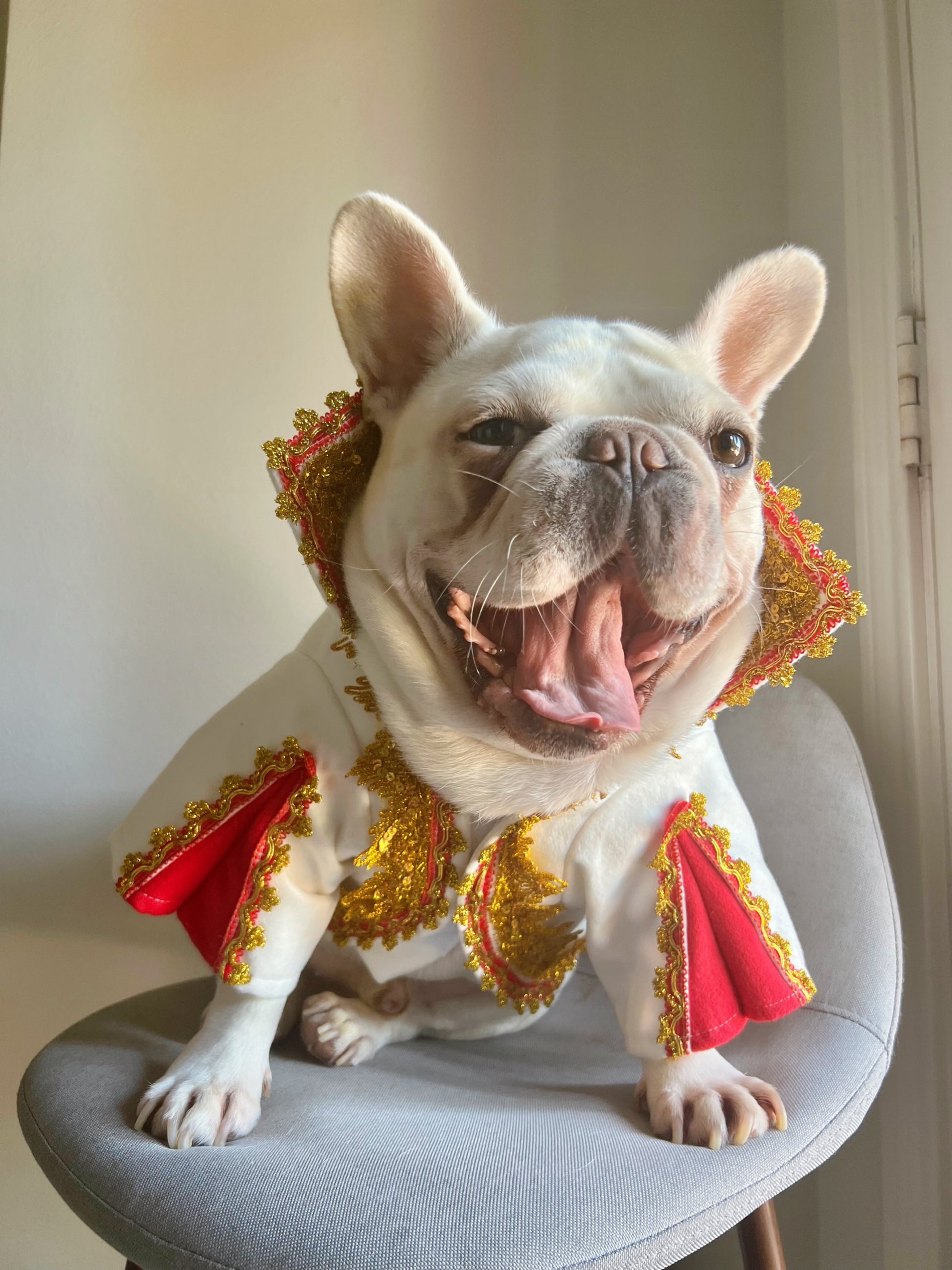 It's perfect! The suit looks so cute on my pug and the material is really good quality. I'll have to figure out a harness situation for him because there isn't a slit for that, but he's ready for the Mutt Gala! Hoping he wins in his dapper suit.