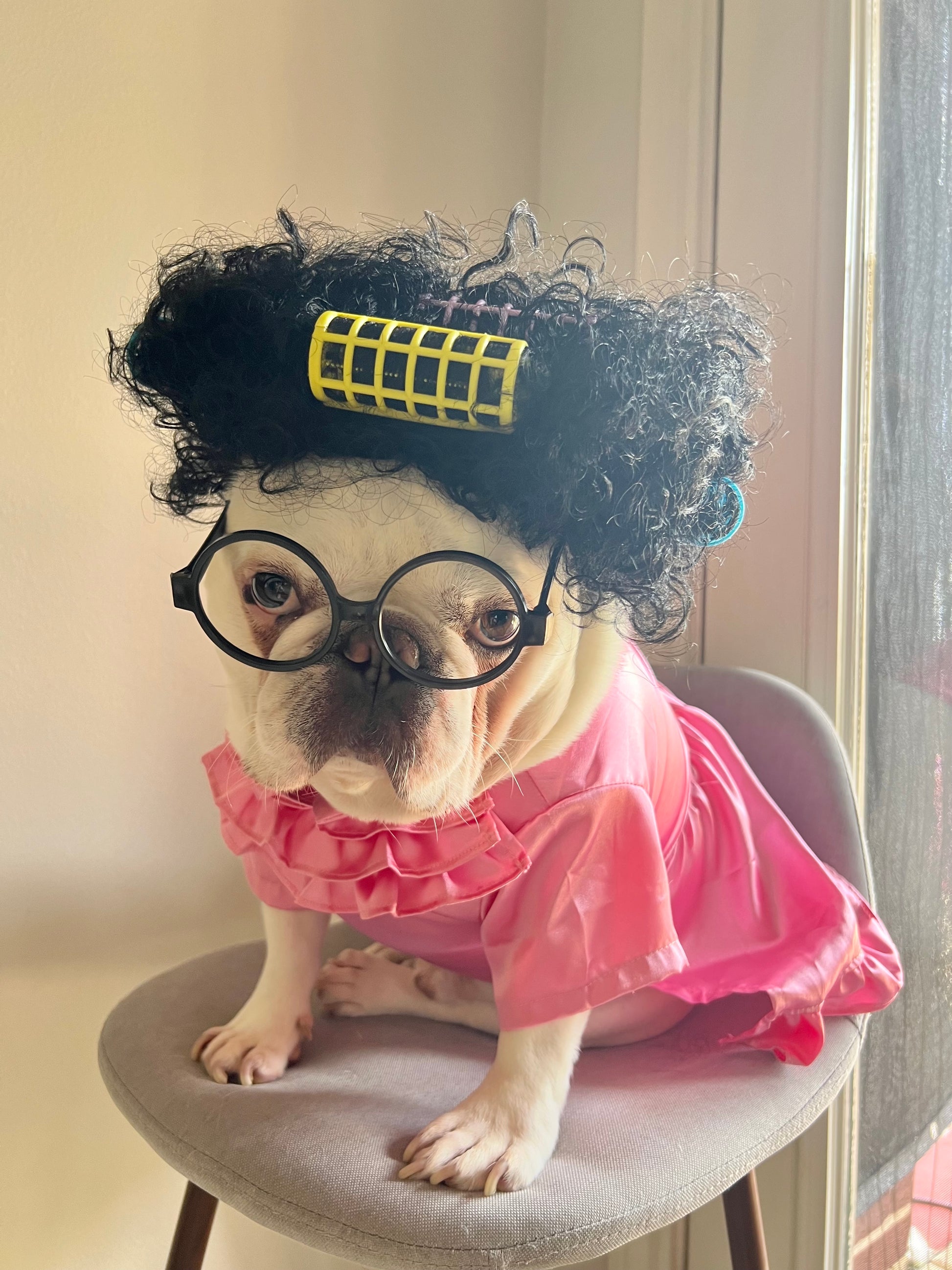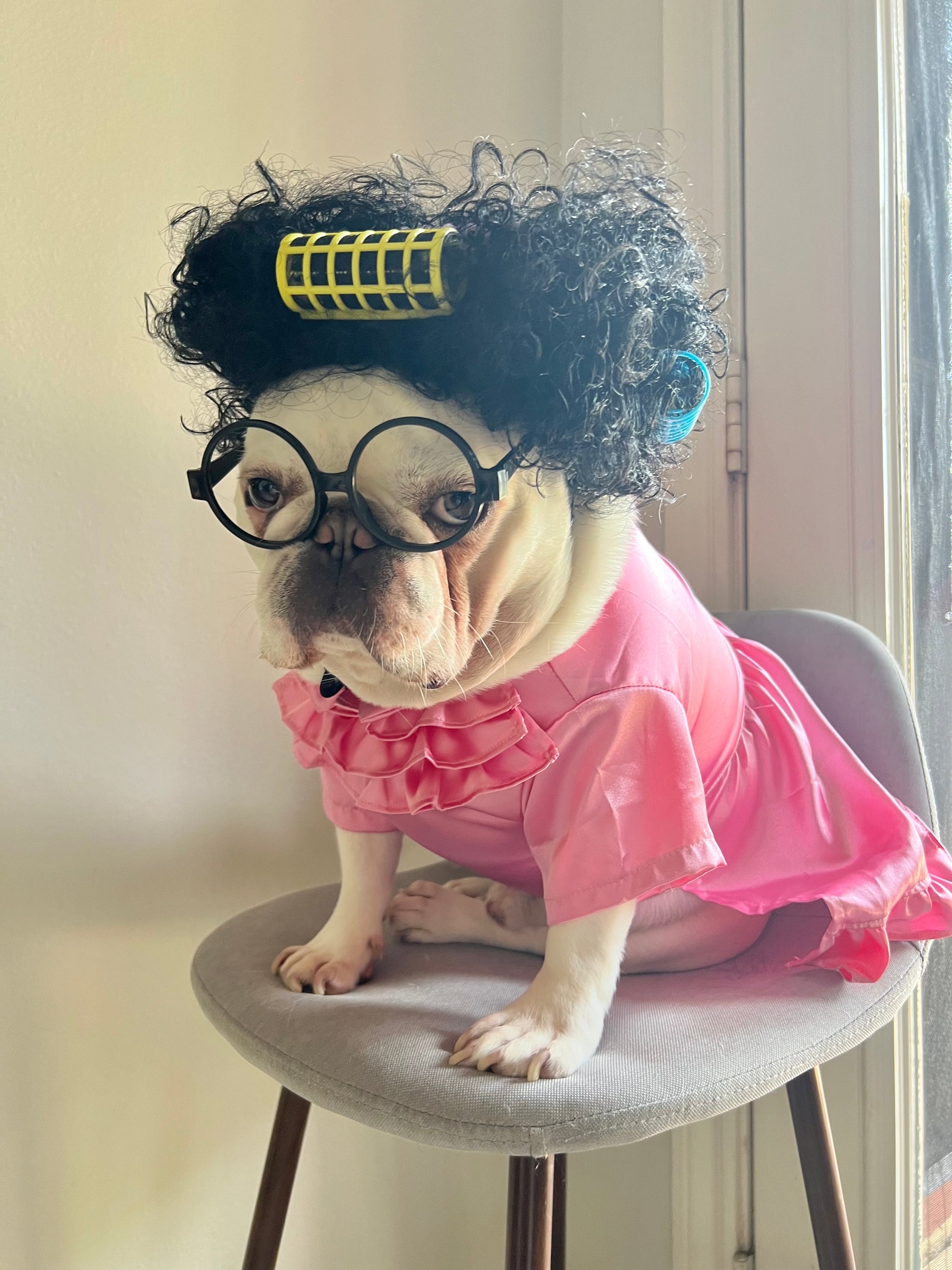 Transform your furry friend into a charming senior citizen with the Grandma Pup Glam Costume! This delightful outfit features a cute pink gown adorned with ruffles, a whimsical curly wig complete with hair rollers, and a pair of classic glasses to complete the look.
