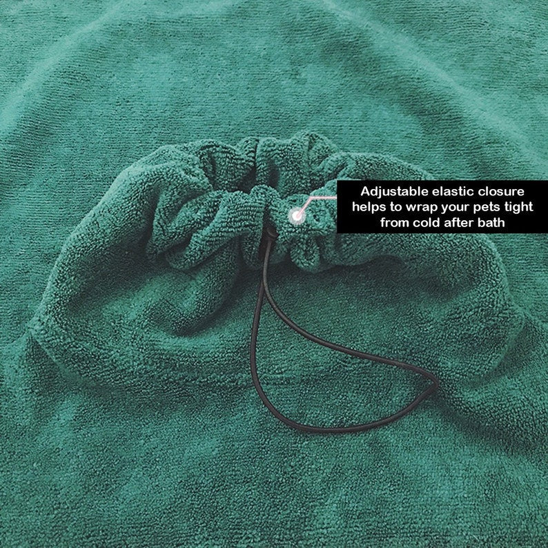 √ Easy to use and fasten securely - Simply wrap around and fasten with the hook. Adjustable elastic closure helps to wrap your pets tight from cold after bath