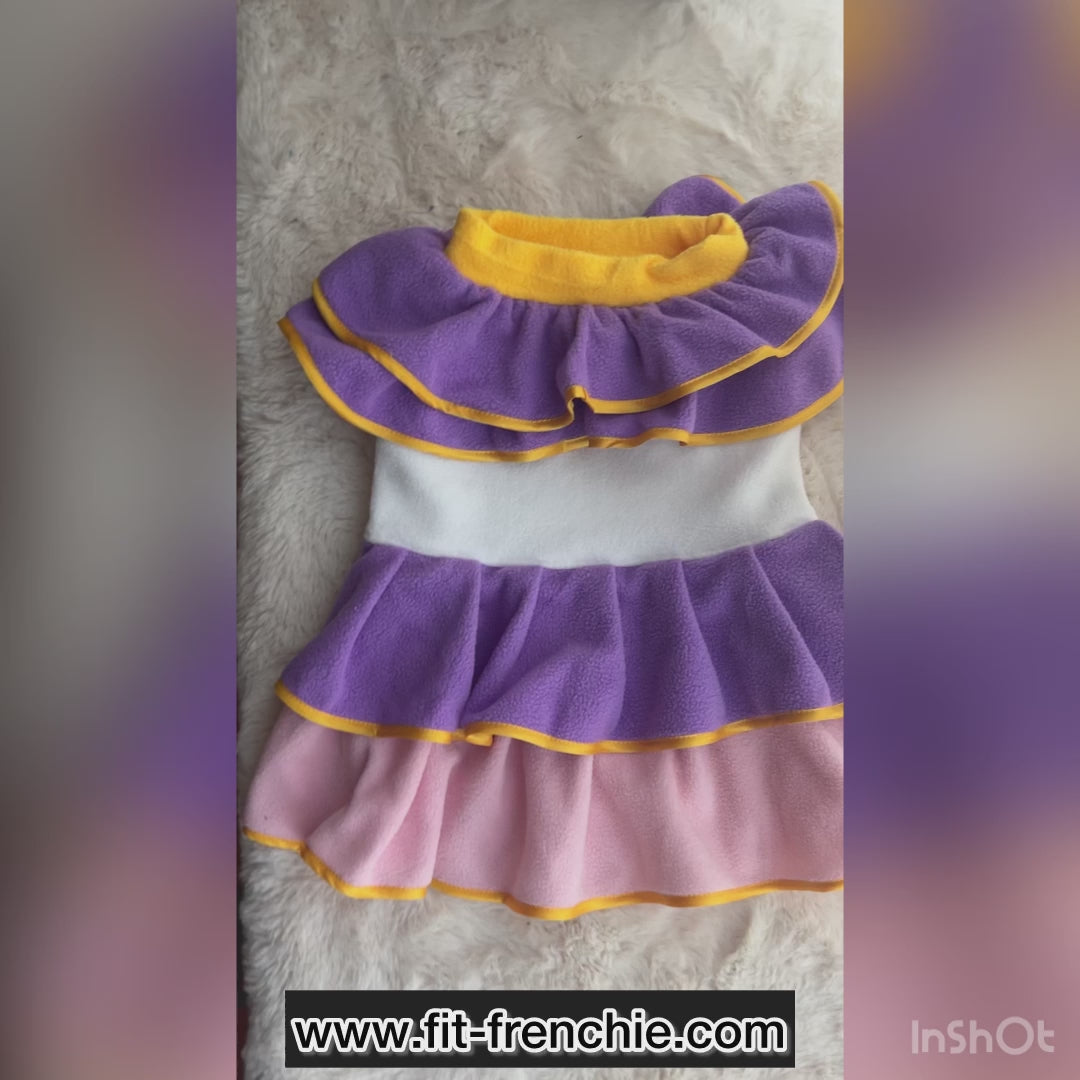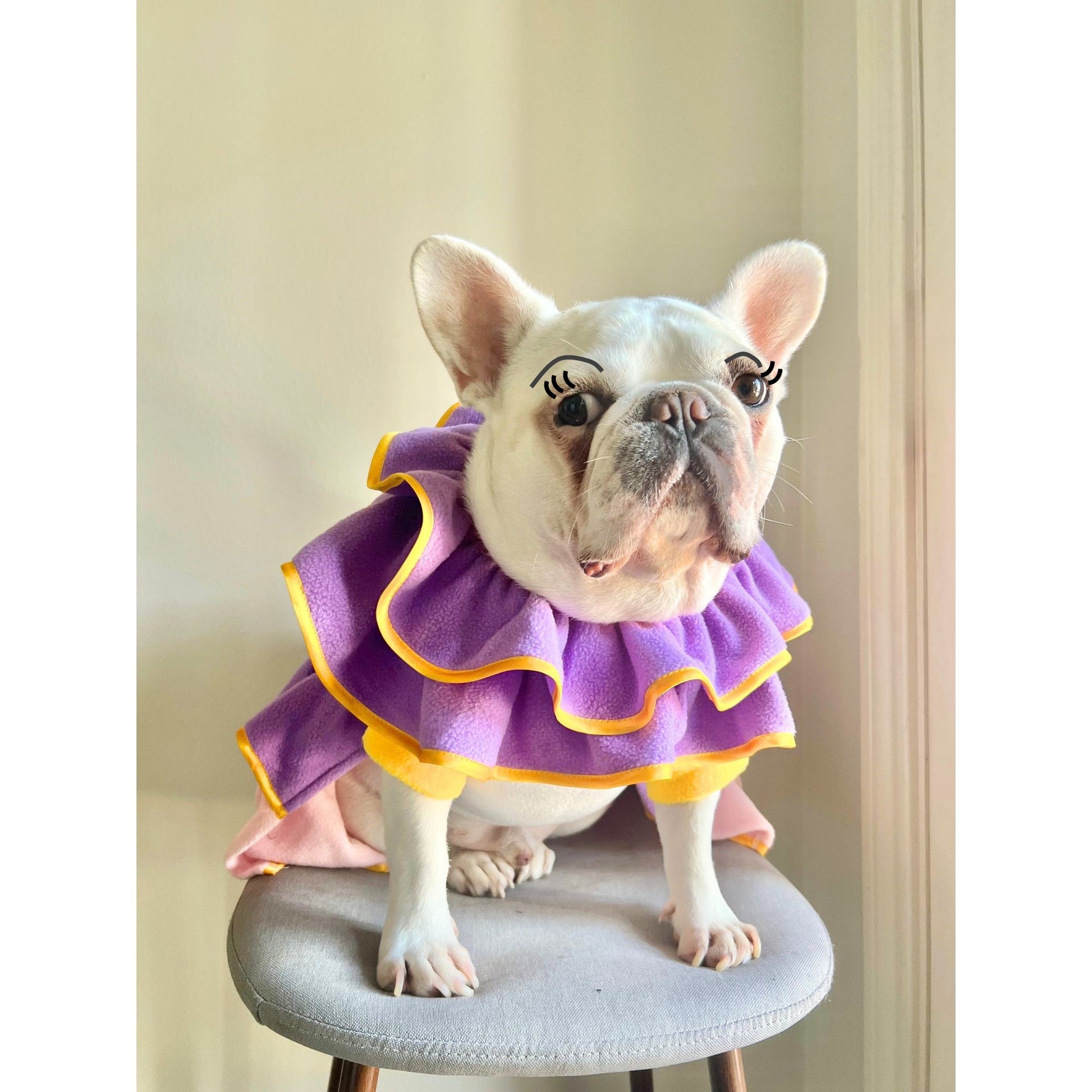 Turn your furry friend into the cutest teapot in town with this Adorable Teapot Dog Costume! This charming costume features a delightful purple and yellow design with ruffled edges, ensuring your pet stands out at any event.