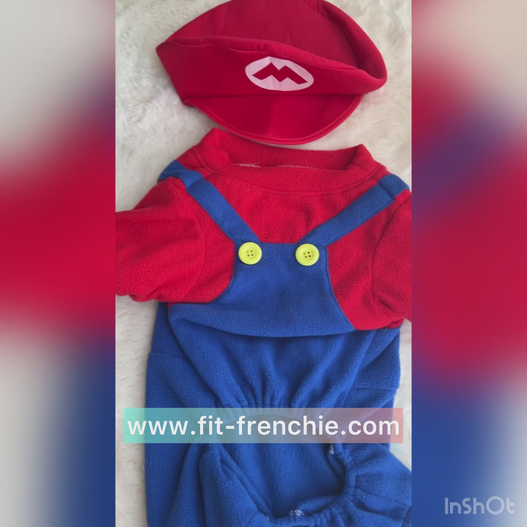 Level up your pet’s wardrobe with our favorite game character signature Costume! This adorable outfit transforms your furry friend into the iconic Mario. Featuring a vibrant blue and and red onesie, complemented by a red cap, this costume is perfect for Halloween, cosplay events, or any Super Mario-themed party.