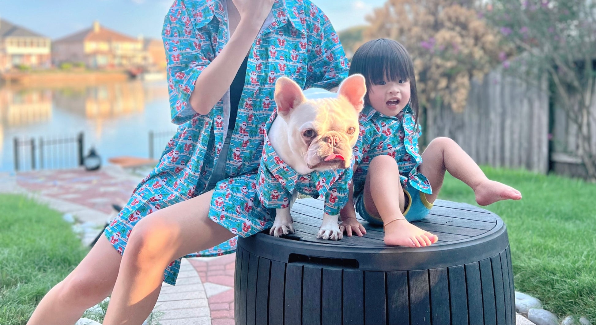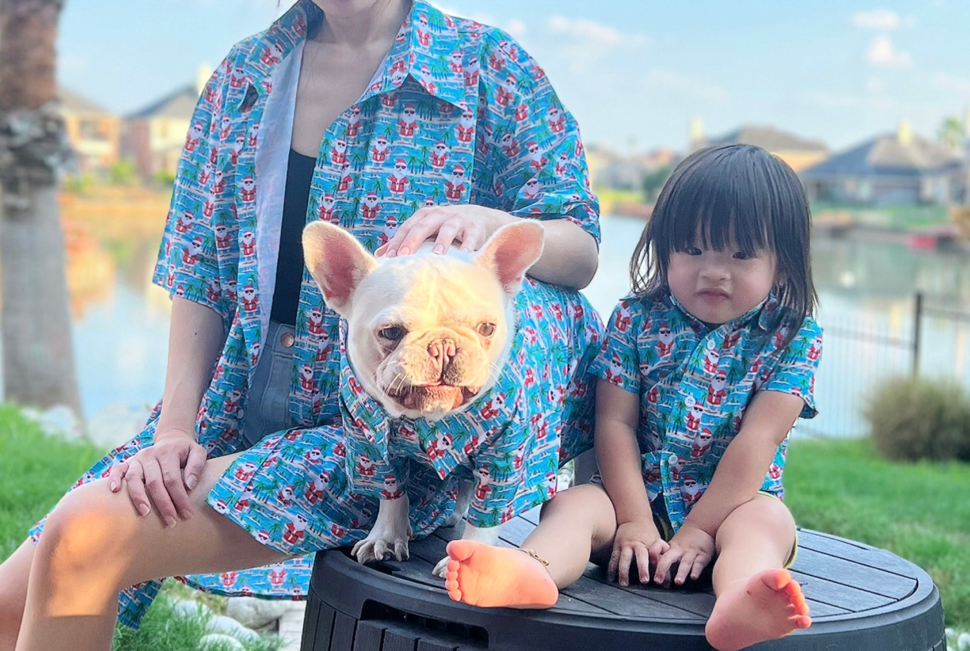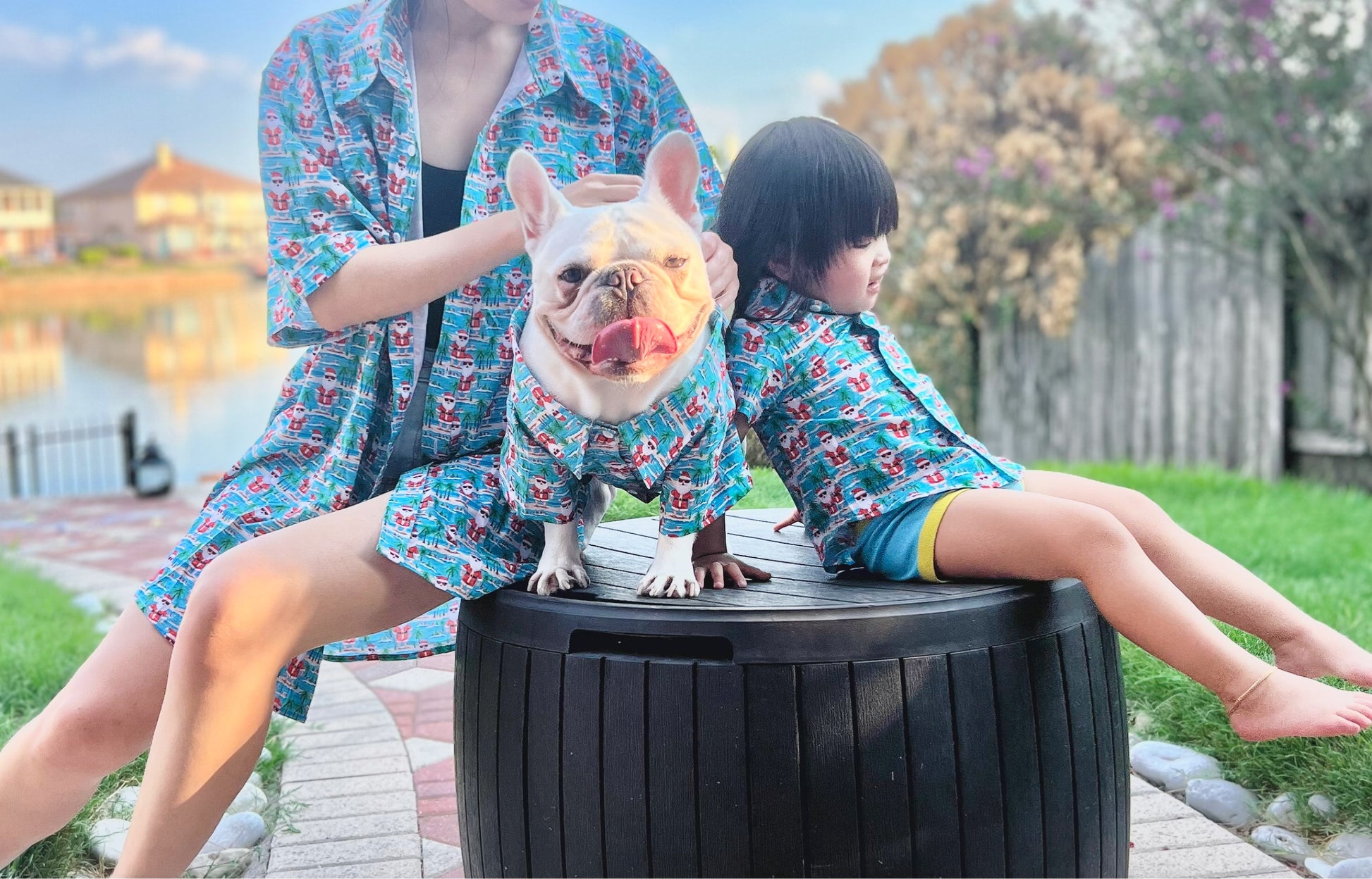 Introducing our delightful "Santa on the Beach" print button-up shirt set for pets and owners, the perfect choice for family matching on Christmas, creating unique Christmas card ideas, and celebrating the holiday season in a warm climate or during a Christmas beach vacation.