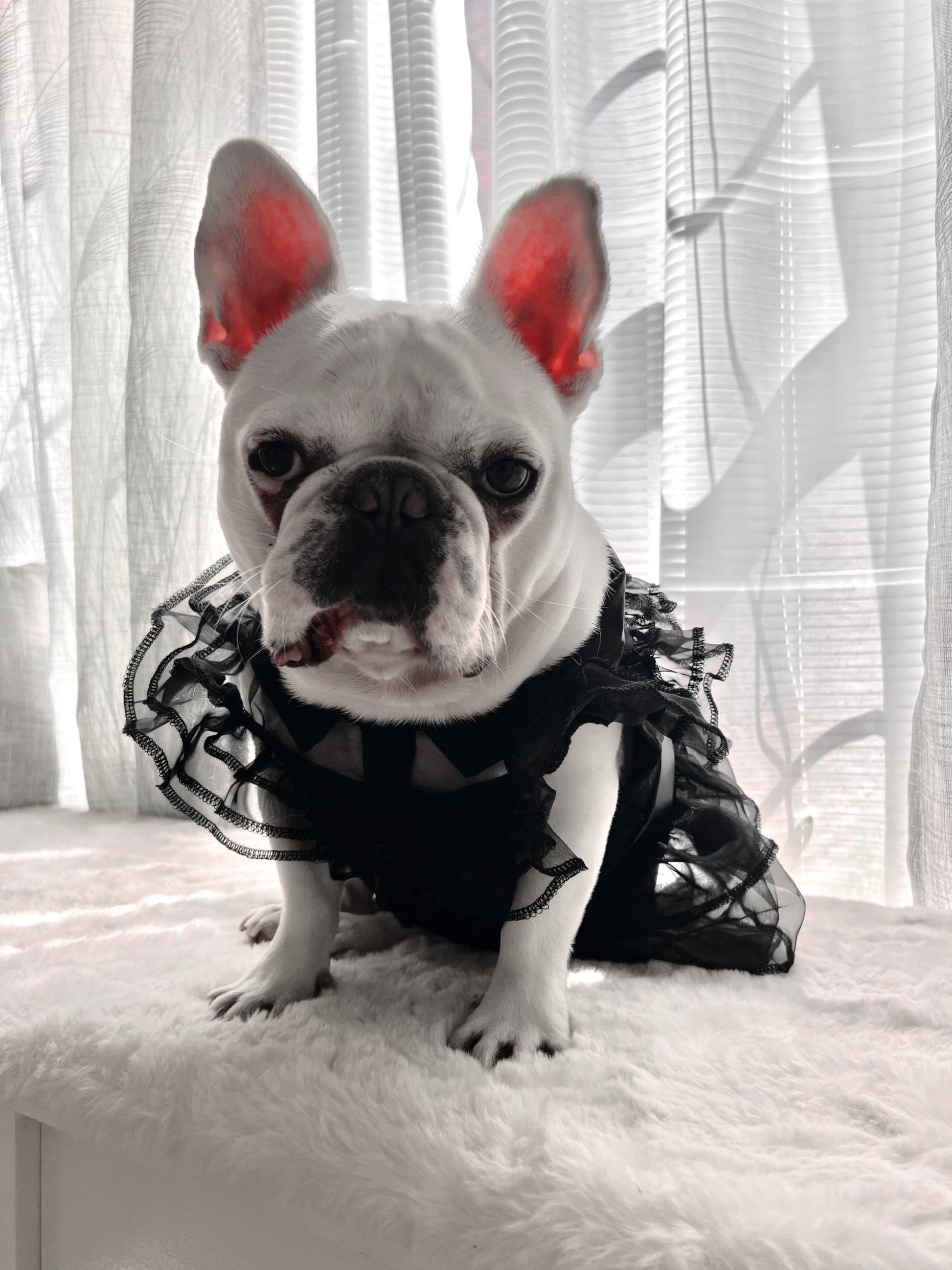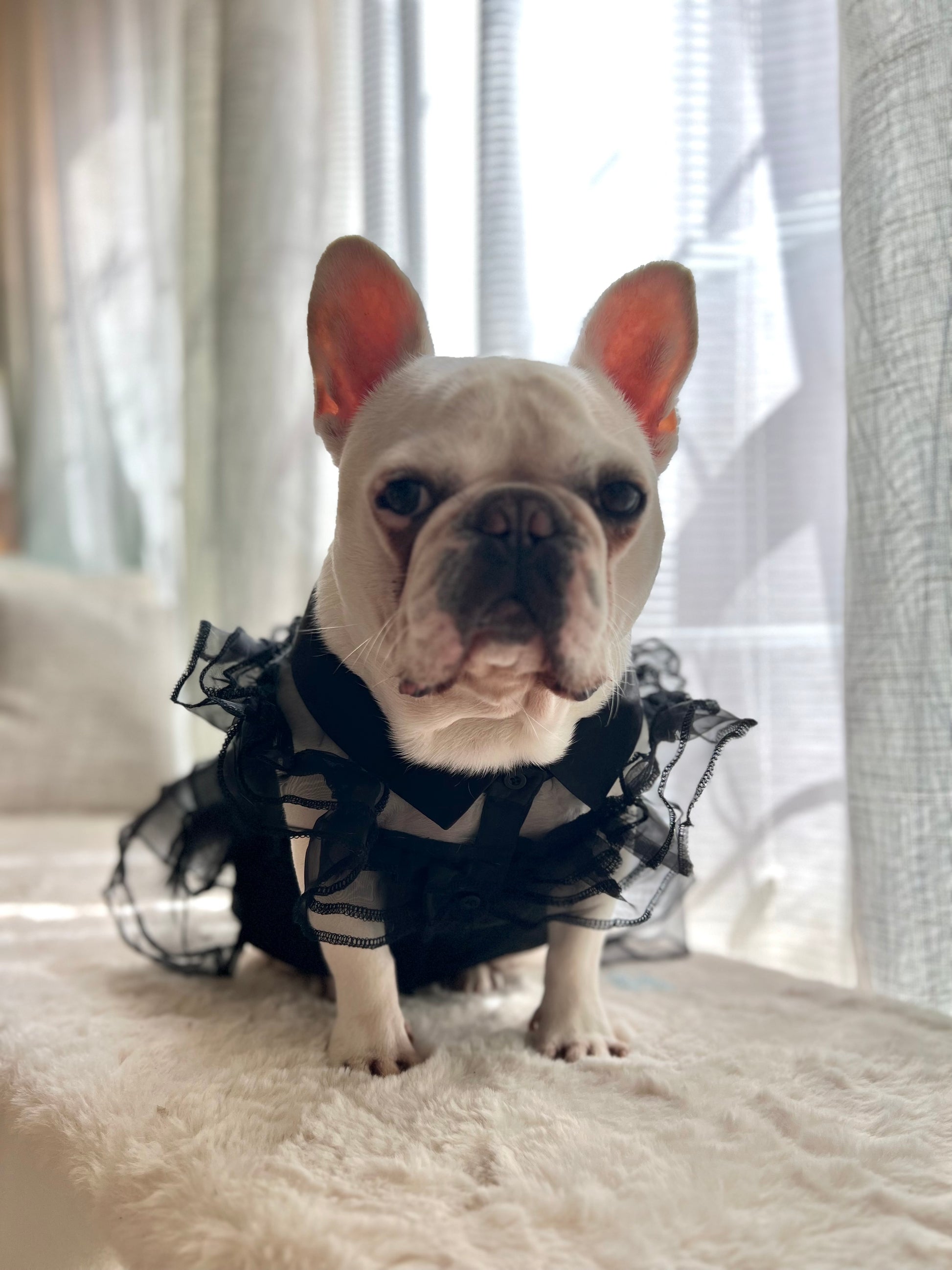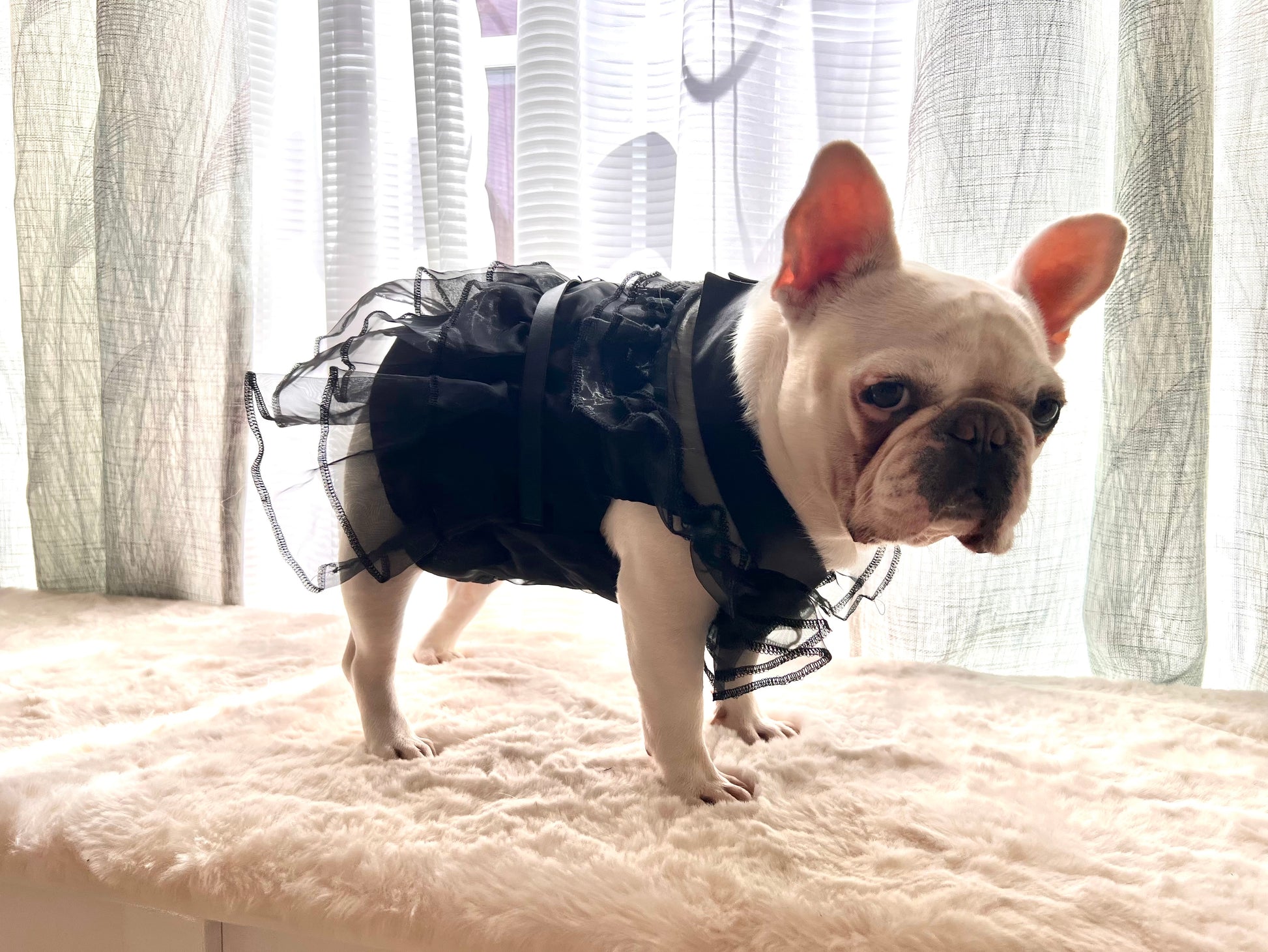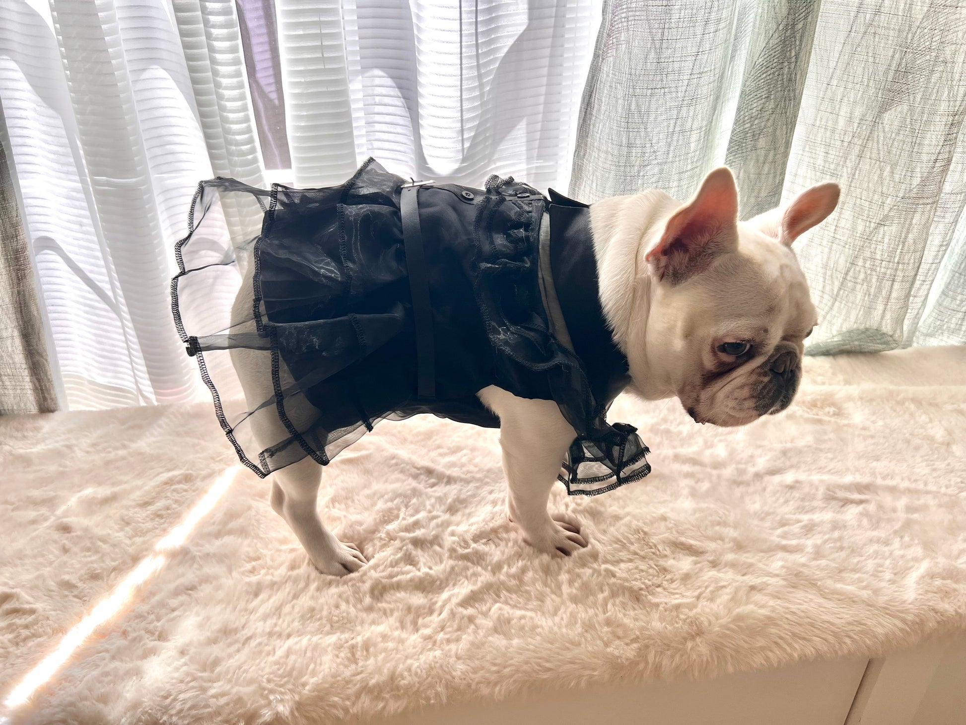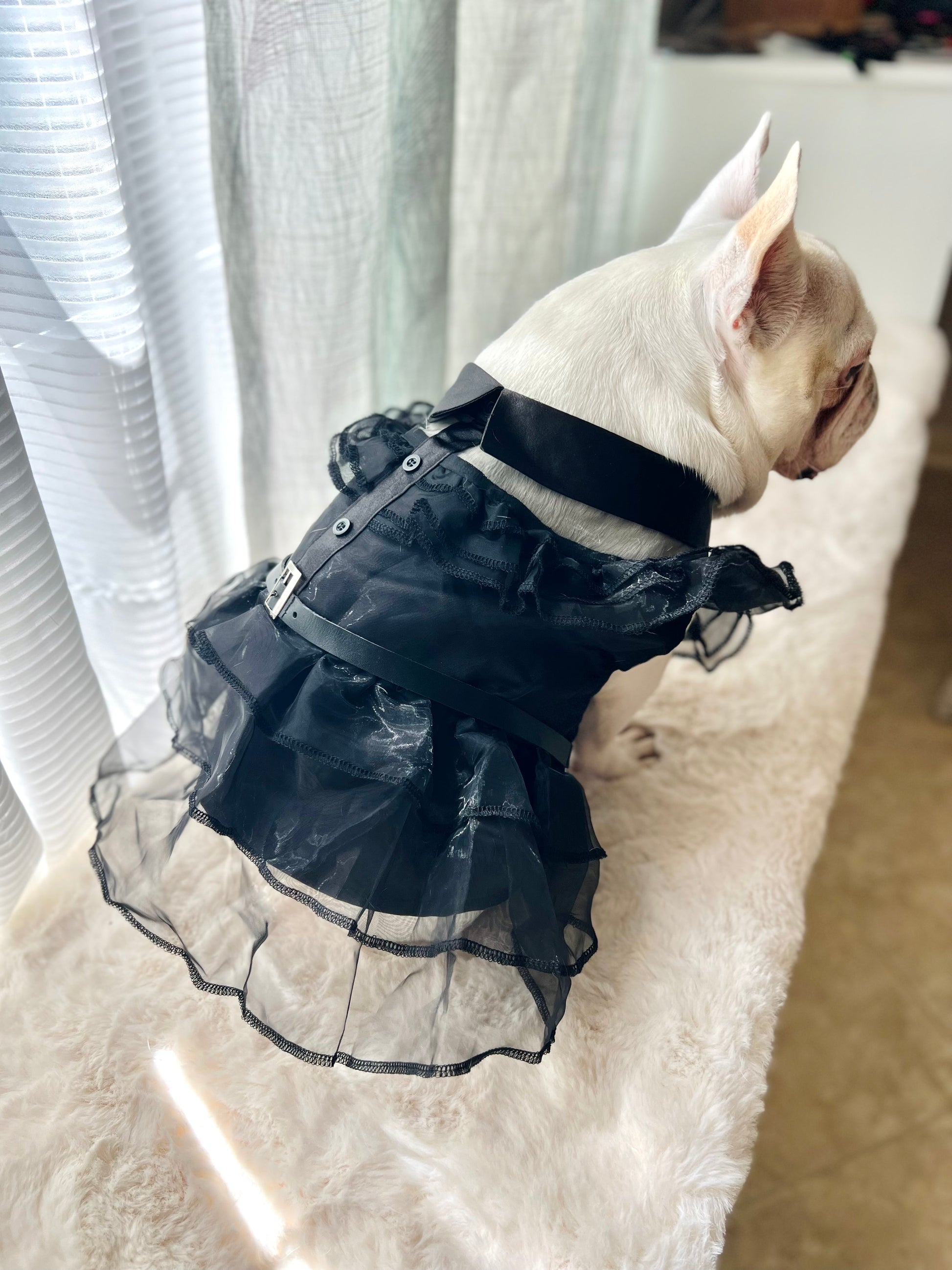 The dress is tailored to ensure a secure and comfortable fit for your dog and cat. It features iconic belt and a button closure, allowing for easy on and off without causing any discomfort to your furry companions. The length of the dress is carefully designed to allow freedom of movement, ensuring that your pets can dance, spin, and play without any hindrance. Giving them a refined and polished look that perfectly complements the overall Halloween theme.
